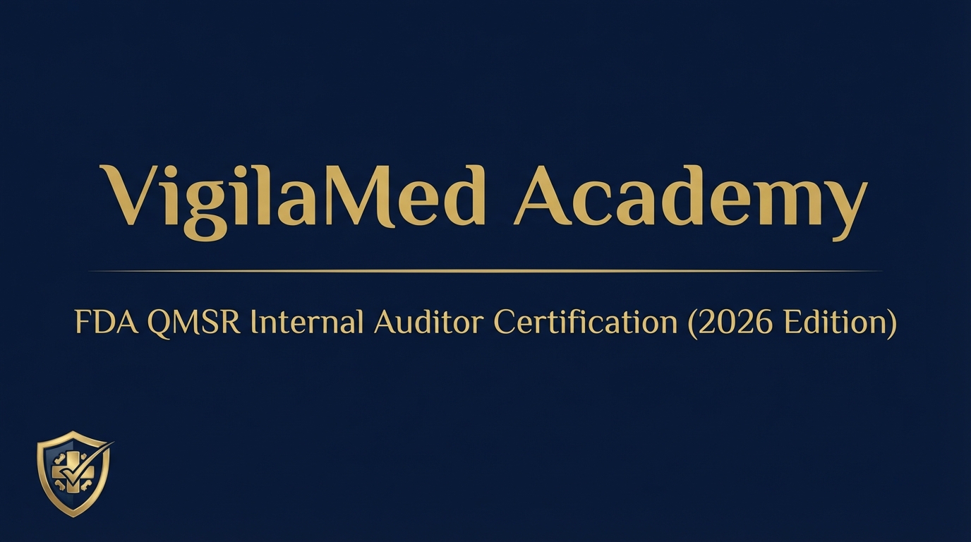 Earn your FDA QMSR Internal Auditor Certification with this self-paced, inspection-defensible training programme. Designed by regulatory specialists and aligned to ISO 13485:2016, ISO 19011:2018, and FDA QMSR (21 CFR Part 820). Includes 10 modules, scenario-based assessments, and 8 downloadable audit tools.
